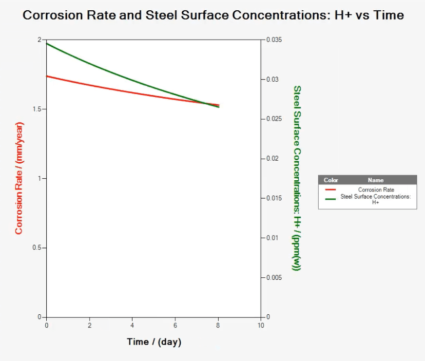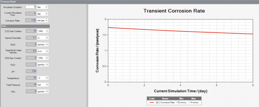 4. The model can be easily expanded to include other factors that affect corrosion behavior, such as formation of corrosion product (currently under development), appearance of other organic acids and/or corrosion inhibitor in the system.